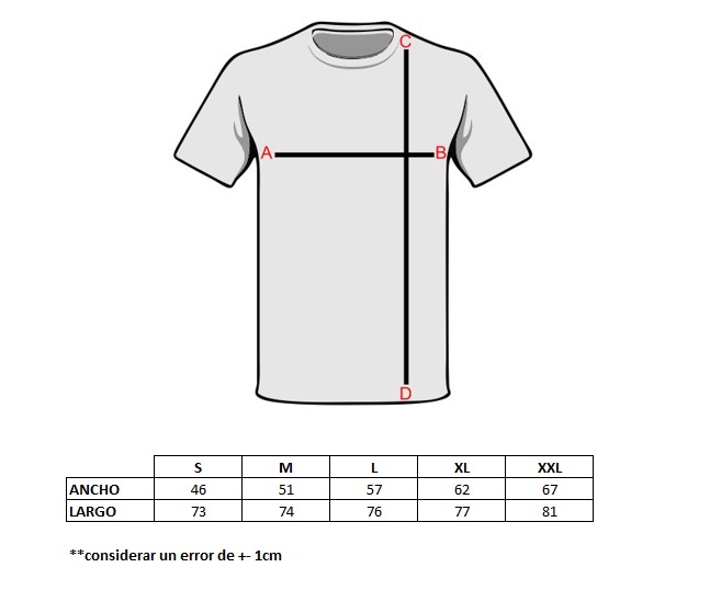 Producto Impreso bajo Pedido, debes confirmar tu talla de acuerdo al siguiente cuadro: